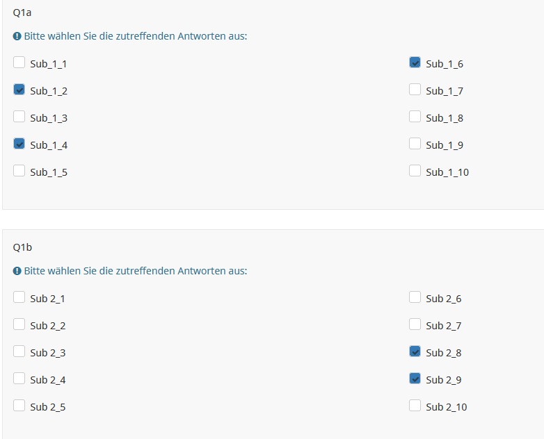 Let's have the first multile question (Q1a) with subquestions A001, A002,... A010