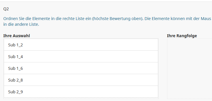 I've got 2 MultipleChoice Questions of 10 SubQuestions and I want the choosen items (max 5) to be used in a following Ranking Question. Is it possible and how?