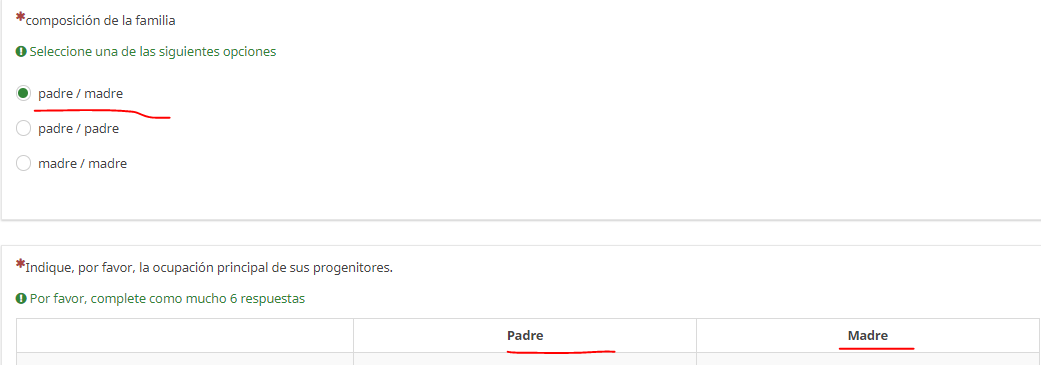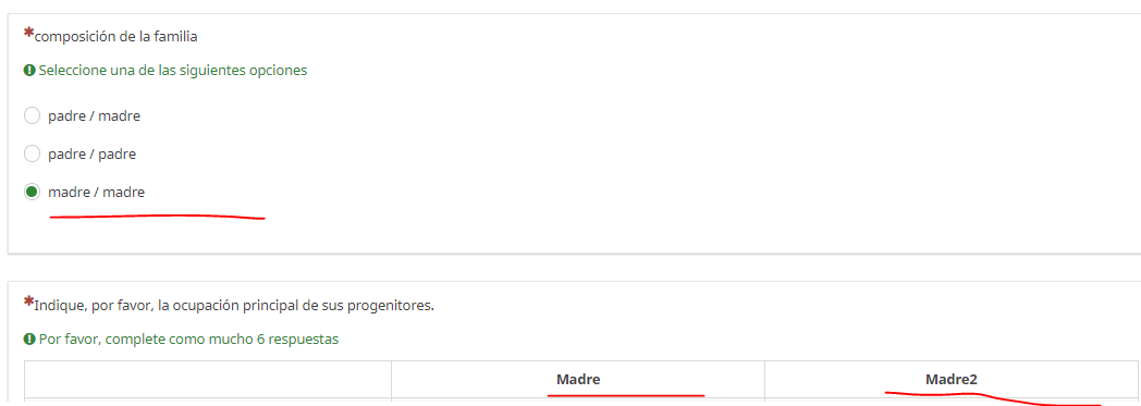 Why don't you ask before about the situation: Is it padre/madre, padre/padre or madre/madre?