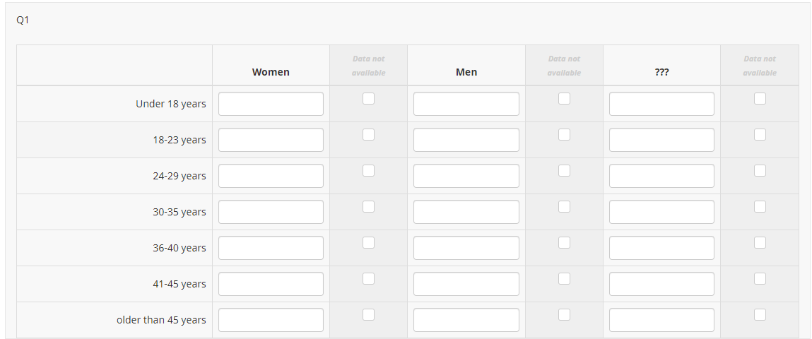 <script type="text/javascript" charset="utf-8"> $(document).on('ready pjax:scriptcomplete',function(){ var thisQuestion = $('#question{QID}'); // Add a question class thisQuestion.addClass('custom-array'); // Column-specific classes $('table.subquestion-list tr', thisQuestion).each(function(i) { $('th, td', this).each(function(i) { $(this).addClass('column-'+i); }); }); }); </script> <style type="text/css">.custom-array table.subquestion-list col { width: auto !important; } .custom-array table.subquestion-list thead .column-0 { width: 25%; } .custom-array table.subquestion-list thead .column-1 { width: 15%; } .custom-array table.subquestion-list thead .column-2 { width: 10%; background-color:#efefef; } .custom-array table.subquestion-list thead .column-3 { width: 15%; } .custom-array table.subquestion-list thead .column-4 { width: 10%; background-color:#efefef; } .custom-array table.subquestion-list thead .column-5 { width: 15%; } .custom-array table.subquestion-list thead .column-6 { width: 10%; background-color:#efefef; } .custom-array table.subquestion-list td.column-2, .custom-array table.subquestion-list td.column-4, .custom-array table.subquestion-list td.column-6 { background-color:#efefef; } </style>