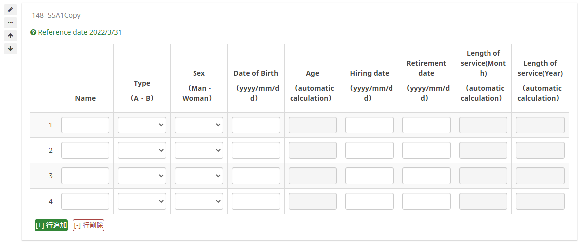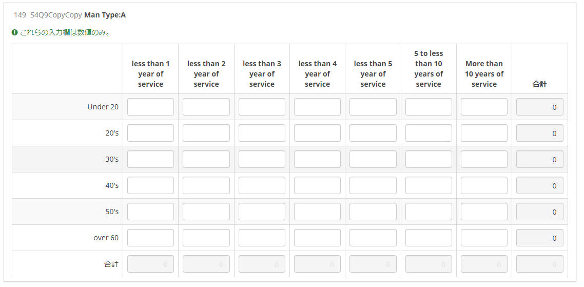 E.g. the first cell "under 20, less than 1 year" for "Man, Type A"
