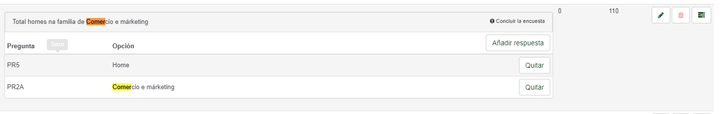 I think the Quota doesnt count because of this, the equation prefill the question but with the code "Comer", instead of select the right option or put the complete name, can someone help me with this?