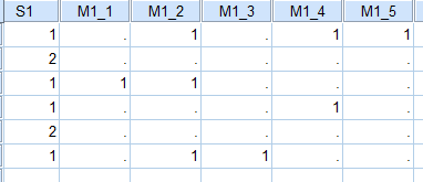 Of course, SPSS can't distinguish between an empty response because of "not displayed" or because of "the respondend didn't select any"
