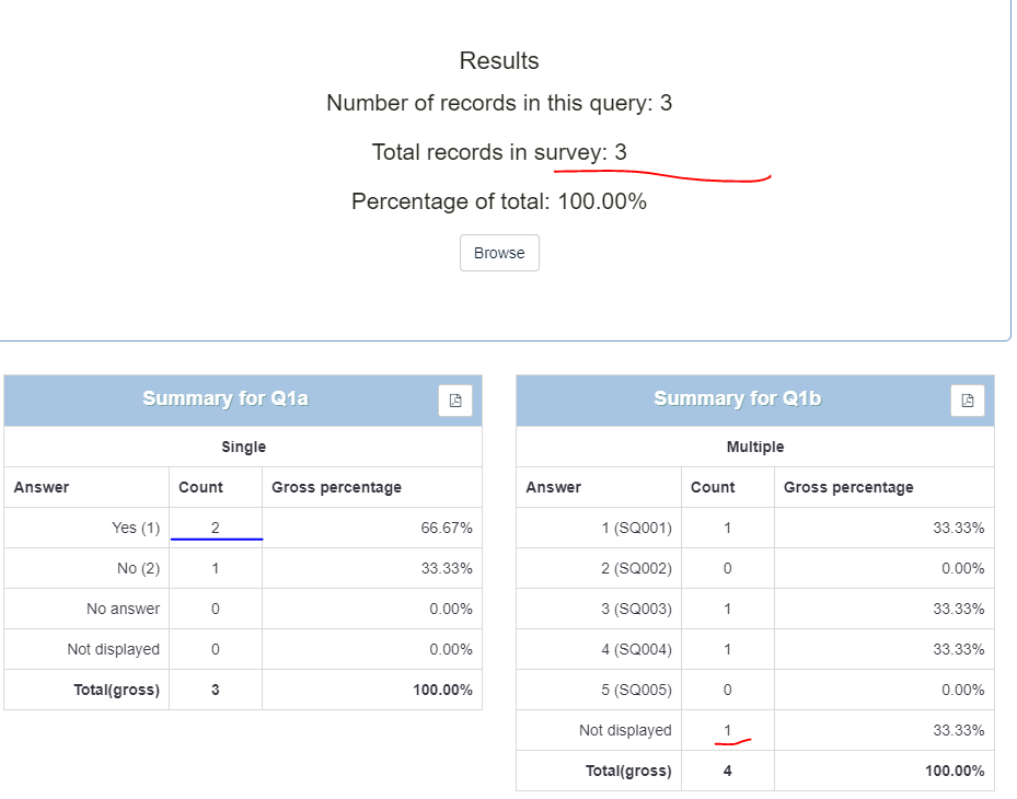 And you see the total count. So the difference is the number of respondents who had to answer this question. (marked "red")