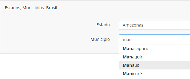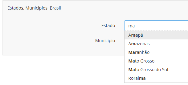 <script src="/upload/surveys/{SID}/files/jquery.easy-autocomplete.js"></script> <link href="/upload/surveys/{SID}/files/easy-autocomplete.css" rel="stylesheet" /> <script type="text/javascript" data-author="Tony Partner"> $(document).on('ready pjax:scriptcomplete',function(){ // Identify this question var thisQuestion = $('#question{QID}'); // Define the data var fullData = [ { 'e': "Acre", 'm': "Acrelândia" }, { 'e': "Acre", 'm': "Assis Brasil" }, { 'e': "Acre", 'm': "Brasiléia" }, ... { 'e': "Alagoas", 'm': "Anadia" }, { 'e': "Alagoas", 'm': "Arapiraca" }, { 'e': "Alagoas", 'm': "Atalaia" }, { 'e': "Alagoas", 'm': "Barra de Santo Antônio" }, { 'e': "Alagoas", 'm': "Barra de São Miguel" }, ... { 'e': "Tocantins", 'm': "Tupiratins" }, { 'e': "Tocantins", 'm': "Wanderlândia" }, { 'e': "Tocantins", 'm': "Xambioá" }, ]; // Define some elements and vars var keys = ['e', 'm']; var input1 = $('.answer-item:eq(0) input:text.form-control', thisQuestion); var inputs = { 0: $('.answer-item:eq(0) input:text.form-control', thisQuestion), 1: $('.answer-item:eq(1) input:text.form-control', thisQuestion), } var answers = { 0: $.trim($(inputs[0]).val()), 1: $.trim($(inputs[1]).val()), } // Create an array of "region" values var regions = ; $.each(fullData, function(i, val) { if(!regions.includes(val.e)) { regions.push(val.e); } }); // Initiate autocomplete on the first input var aOptions1 = { data: regions, list: { maxNumberOfElements: 100, match: { enabled: true }, onChooseEvent: function() { //If new selection... if($.trim(inputs[0].val()) != answers[0]) { answers[0] = $.trim(inputs[0].val()); // Reset following items $('li.answer-item:gt(0) input:text', thisQuestion).val('').trigger('keyup').easyAutocomplete({ 'data': '' }); //Initiate autocomplete on next input childAutocomplete(0); } } } }; inputs[0].easyAutocomplete(aOptions1); function childAutocomplete(index) { if((index+1) < $('li.answer-item', thisQuestion).length) { var parentInput = inputs[index]; var nextInput = inputs[(index+1)]; var key1 = keys[index]; var key2 = keys[(index+1)]; // Define the new data var thisFullData = fullData.filter(function(obj) { return (obj[key1] == $.trim(parentInput.val())); }); var thisData = ; $.each(thisFullData, function(i, val) { if(!thisData.includes(val[key2])) { thisData.push(val[key2]); } }); //Initiate autocomplete on next input var aOptions = { data: thisData, list: { maxNumberOfElements: 100, match: { enabled: true }, onChooseEvent: function() { //If new selection... if($.trim($(nextInput).val()) != answers[(index+1)]) { answers[(index+1)] = $.trim($(nextInput).val()); // Reset following items $('li.answer-item:gt('+index+1+') input:text', thisQuestion).val('').trigger('keyup').easyAutocomplete({ 'data': '' }); //Initiate autocomplete on next input childAutocomplete(index+1); } } } }; nextInput.easyAutocomplete(aOptions); } } // Returning to page if($.trim(inputs[0].val()) != '') { childAutocomplete(0); } }); </script>