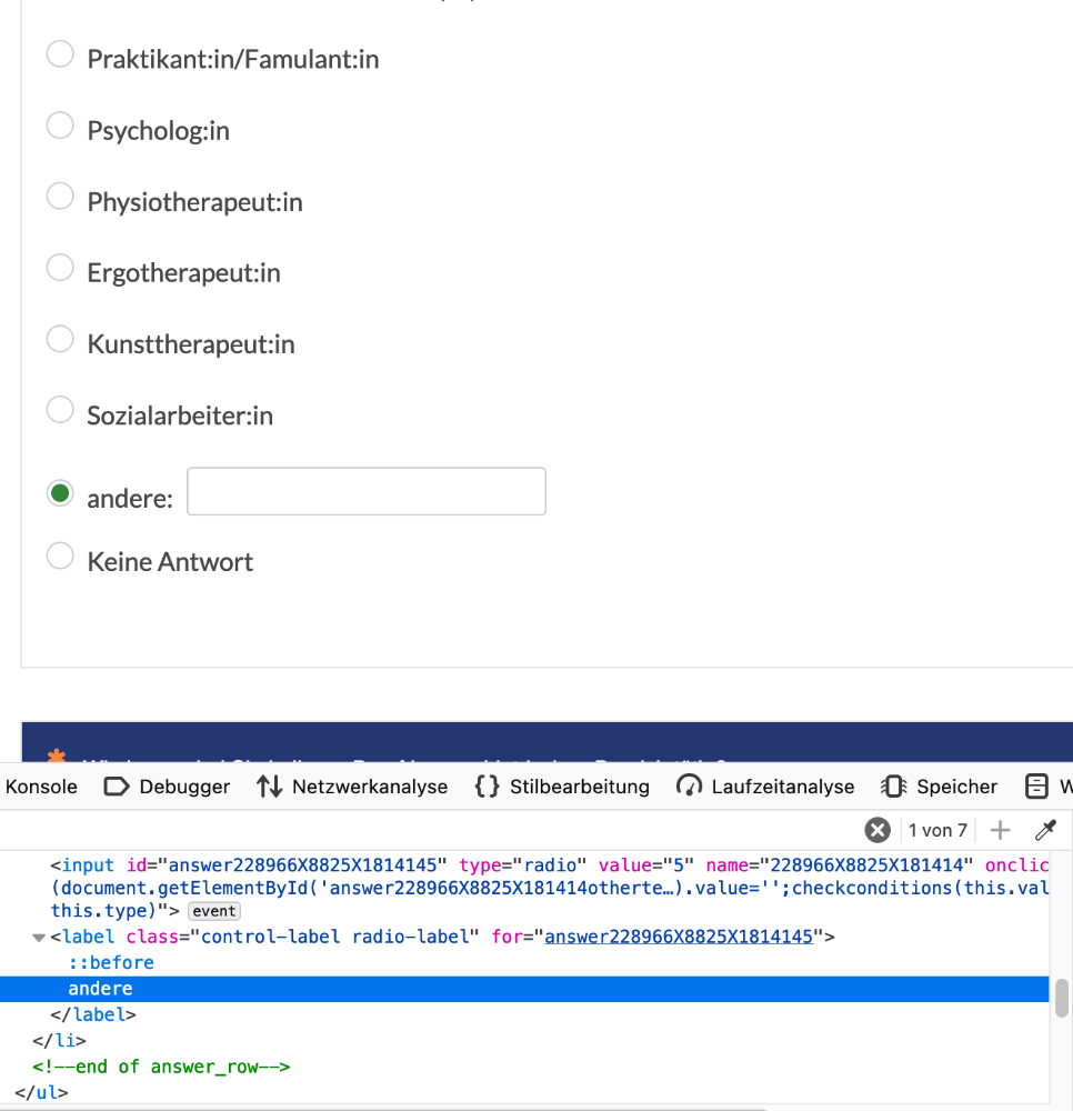 If you activate the survey, enter some data, you will see how the answer "Others" looks like.