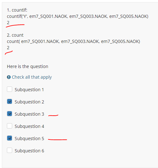 But the respondent will get the same result if he selects all subquestions. So this is not really useful.