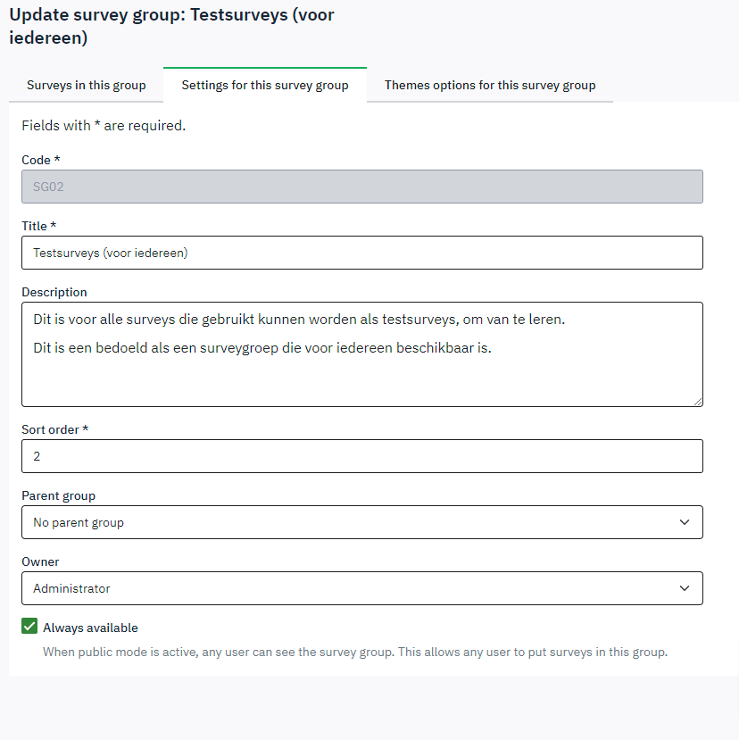The LimeSurvey user group is more a shortcut to select a lot of user than a real user group …I would like to see the same approach for user groups: when you add a new user to a user group, he or she is also added to all surveys that the user group has been added to.