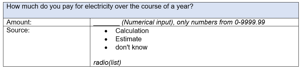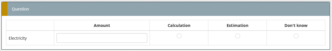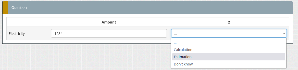 <script type="text/javascript" charset="utf-8"> $(document).on('ready pjax:scriptcomplete',function(){ var thisQuestion = $('#question{QID}'); // Insert selects $('.answer-item.answer_cell_X002', thisQuestion).addClass('with-select').append('<select class="inserted-select form-control list-question-select">\ <option value="">...</option>\ <option value="1">Calculation</option>\ <option value="2">Estimation</option>\ <option value="3">Don\'t know</option>\ </select>'); // Listeners $('.inserted-select', thisQuestion).on('change', function(i) { if($(this).val() != '') { $(this).closest('.answer-item').find('input:text').val($('option:selected', this).val()).trigger('change'); } else { $(this).closest('.answer-item').find('input:text').val('').trigger('change'); } }); // Returning to page $('.with-select input:text', thisQuestion).[url=https://www.php.net/each]each[/url](function(i) { var thisCell = $(this).closest('.answer-item'); var inputText = $.[url=https://www.php.net/trim]trim[/url]($(this).val()); $('select.inserted-select', thisCell).val(inputText); }); // Clean-up styles $('select.inserted-select', thisQuestion).css({ 'max-width': '100%' }); $('.with-select input:text', thisQuestion).css({ 'position': 'absolute', 'left': '-9999em' }); }); </script>