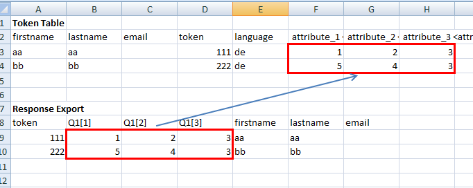 2. We are conducting a 3 round closed Delphi survey. In the first round, participants rate 40 items on a Likert scale from 1 to 5. In the second round, we will ask participants to rate the items again (on the same likert scale) but after extra information. We also want to show them their own rating of round 1 with every item. So the survey of round 2 is a different survey then round 1. Every participant has his/her own personal token, which will be the same in survey two.