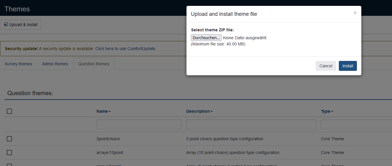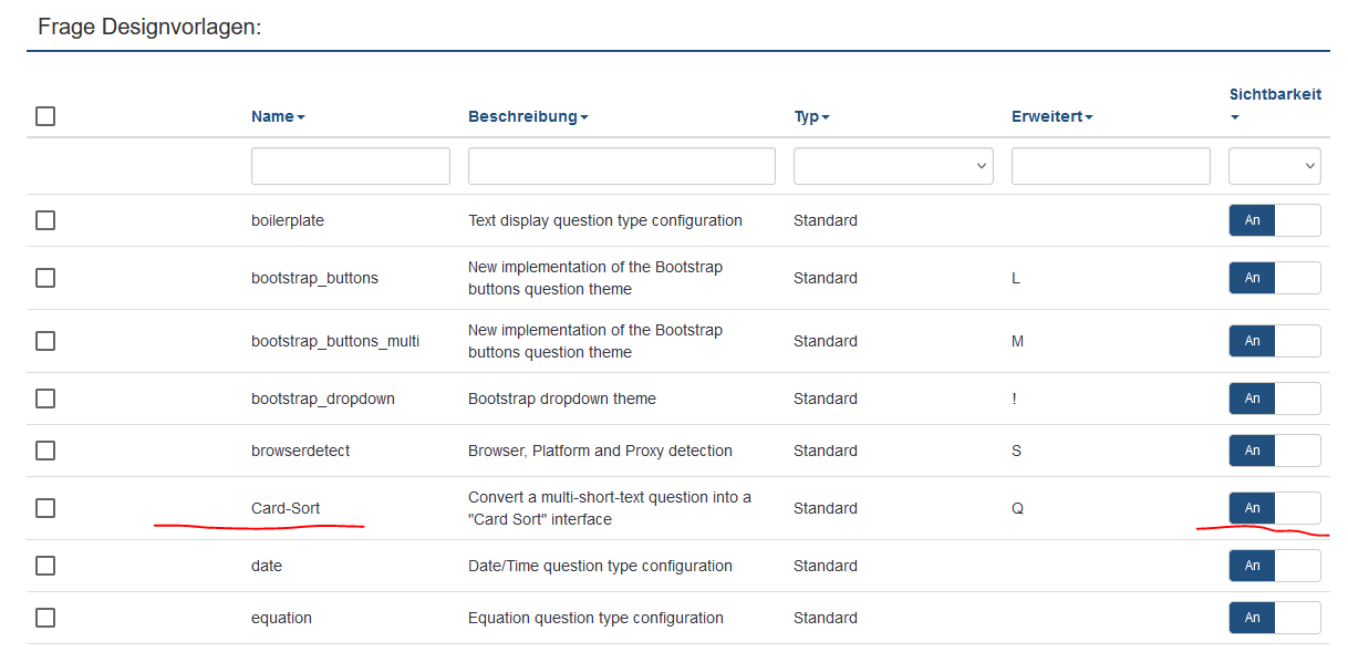 - Manual installation - Extract the download and upload the Card-Sort folder to /pathToLimeSurvey/upload/themes/question/.