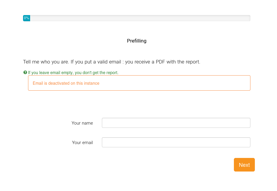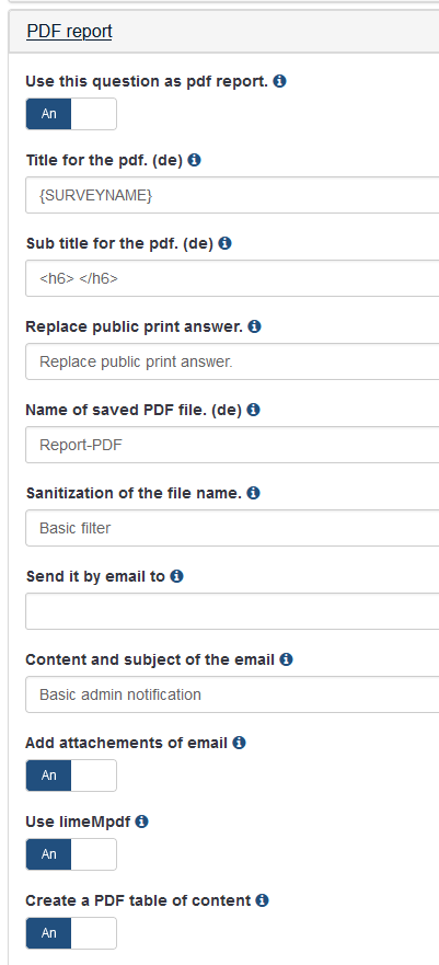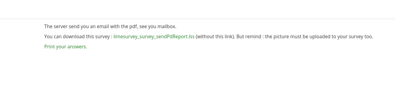 1) When running the demo reportPDF survey is activated and I run it, the first page shows an error: "Email is deactivated on this instance". The demos survey mails out the pdf as an attachment just fine and I don't see any settings on the system that might cause the issue. Any thoughts on what might cause this and how to resolve it?