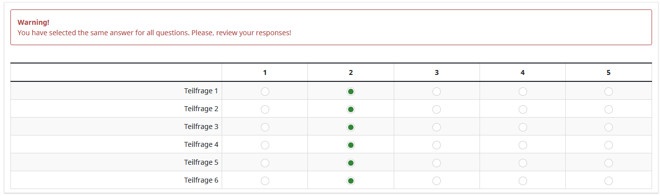 // If the same answer is selected for all questions, display a warning message
