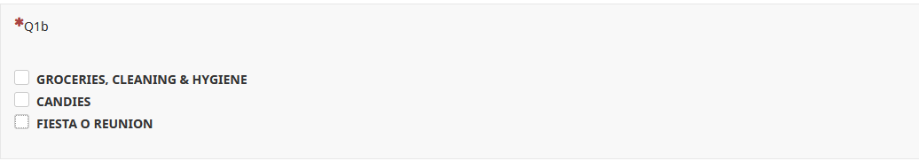 <script charset="utf-8" type="text/javascript"> $(document).ready(function() { $( '#question{QID} .question-item:eq(0)').addClass('hide-pseudo-elements').find('input.checkbox').remove(); $( '#question{QID} .question-item:eq(7)').addClass('hide-pseudo-elements').find('input.checkbox').remove(); $( '#question{QID} .question-item:eq(13)').addClass('hide-pseudo-elements').find('input.checkbox').remove(); }); </script>