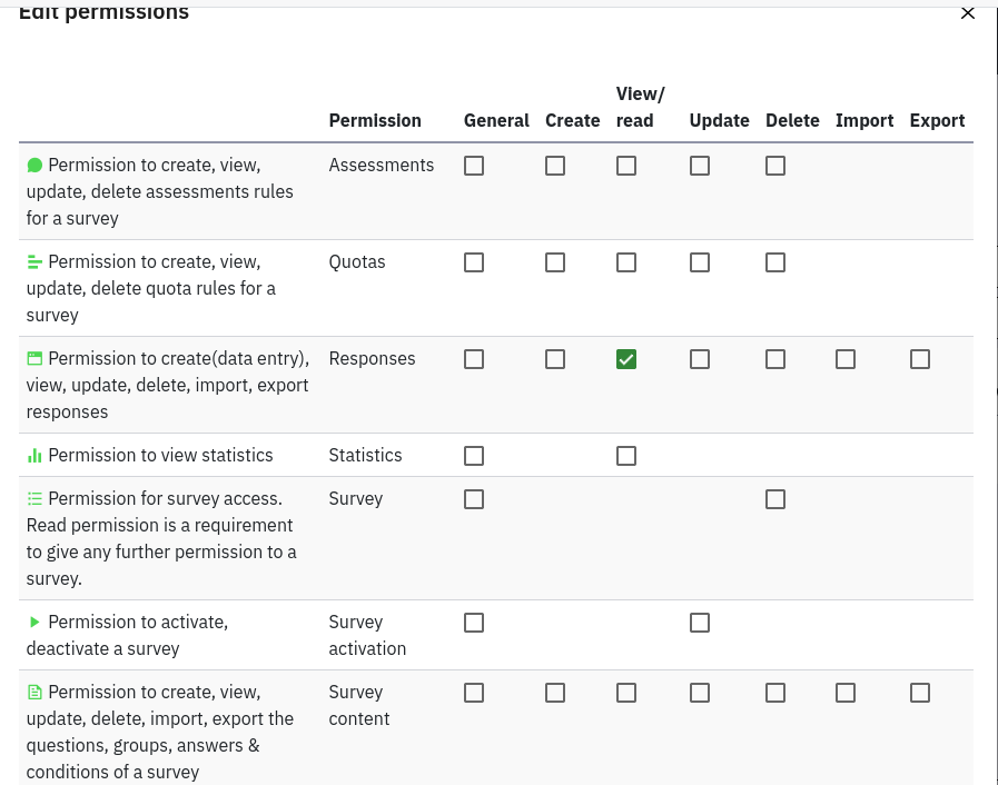 I am currently running an active survey in LimeSurvey and need to allow a user to have read-only access to the responses being collected. Can anyone guide me on how to configure this permission in LimeSurvey?