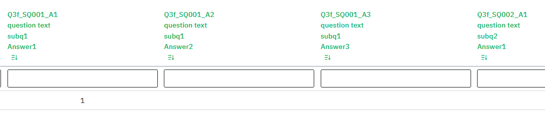 Obviously not the "1" of the selected cells, but the t4ext of the subquestion.