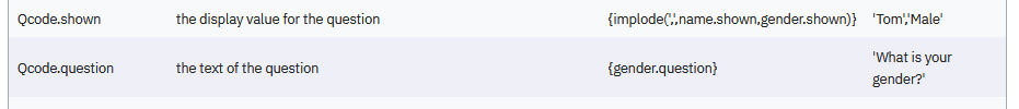 Furthermore you see here that to display the text of the "Other" options you have to addrress thes3e fields