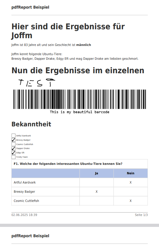 Iwant to show barcode from nationalid in the survey questios to appear as barcode on the pdf report, how to do that, i am using pdfrepot extenstion