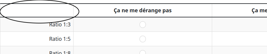In a question of type "array" the cell of the "table" at the heading position of the column containing the various questions is blank. To clarify, I refer to the same row as the row containing the various answer options. See the circled cell in the attached screen shot.