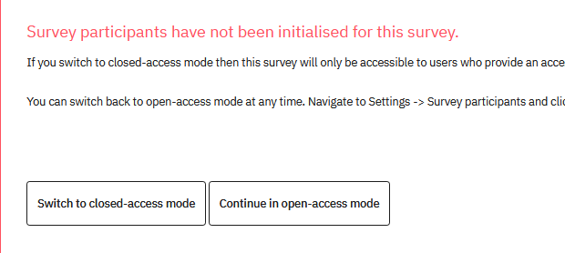 Just create a participant table.Can I alter the mode of an active survey to closed-access mode?
