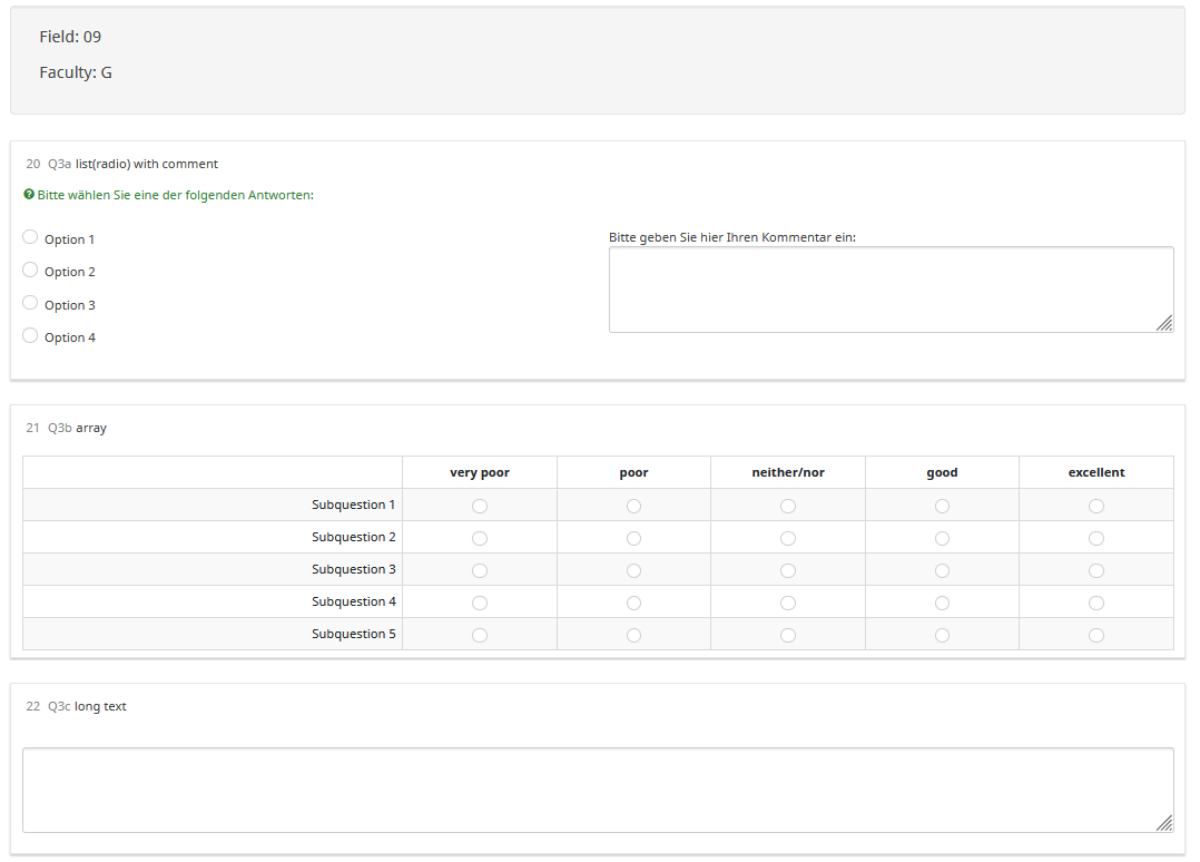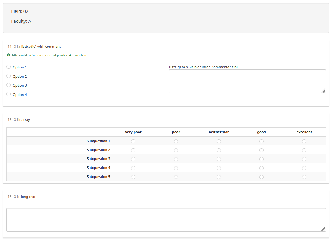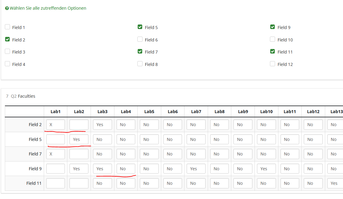 Preferably, the teacher would be able to choose which ones they want to answer. If they want to grade only 2 out of the 4 fields of study they taught across 4 faculties, that should be possible.And the respondent - the teacher - is to answer for each of these different fields x faculties?
