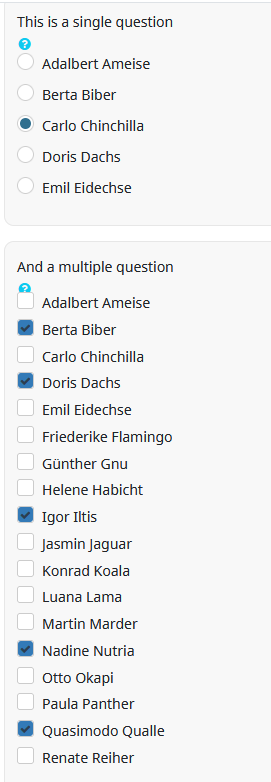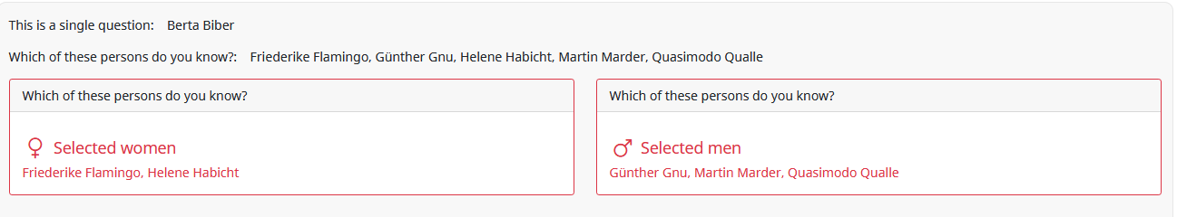 These are the equations for the single and the multiple questions.{if(!is_empty(that.Q1),Q1.question+': '+Q1.shown,'')}