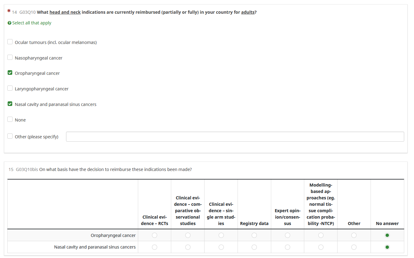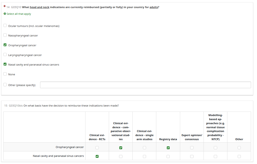 I have a first question with multiple choice: the answers selected from this question should be the questions from the next question, and then for each there are several answers possible: I managed to do with the question type "Array" and radio button (see screenshot: only the selected answers from the first question appear in the second question as lines), but I would like to have multiple answers possible for each line instead of radio buttons: how to do it?