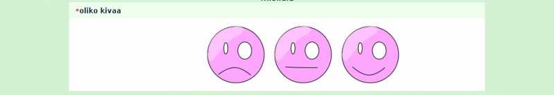 <a href="javascript:selectface(0);"><img class="face num0" src="https://yourdomain.com/upload/01.jpg" /></a> <a href="javascript:selectface(1);"><img class="face num1" src="https://yourdomain.com/upload/02.jpg" /></a> <a href="javascript:selectface(2);"><img class="face num2" src="https://yourdomain.com/upload/03.jpg" /></a><br/> <script type="text/javascript" charset="utf-8"> function selectface(face) { $('.face').removeClass('selected'); $('#questionID input.radio:eq('+face+')').attr('checked', true); $('.num'+face).addClass('selected'); } $(document).ready(function() { $('#questionID .survey-question-answer ').hide(); $('#questionID .questionhelp ').hide(); selectface($('#questionID input.radio:checked').val() - 1); }); </script> <style> .face { border:4px solid white; } .selected { border:4px solid #cc0000; } </style>