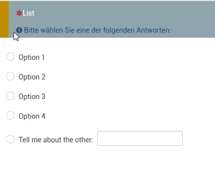 I have just installed LimeSurvey. Very, very impressed. I also noticed no alternative label for other in my List (Radio) questions. I hope this can be taken care of. For now, I will continue with just the default "Other" text instead. Thanks all for cooperating and participaring.