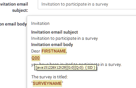 The evaluation of the equation is done before saving any results. Without any responses you still can get the value. In this example Q00=SID.tammo wrote: @Ben_V: Just guessing: when sending invitations and no responses in the database, would this work?