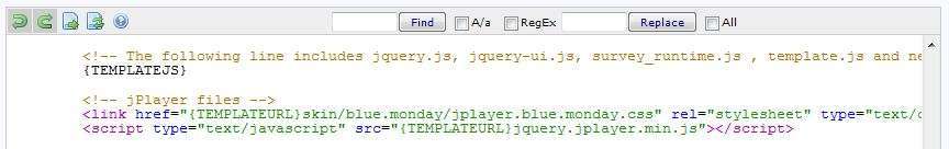 3. Sorry, which template? (and by this I suppose you mean the 'Question page', 'Load page', 'template.js', 'template.css' etc. of the current template ('copy_of_default', 'copy_of basic' etc.) ?)Download the jPlayer plugin and add these to your template: