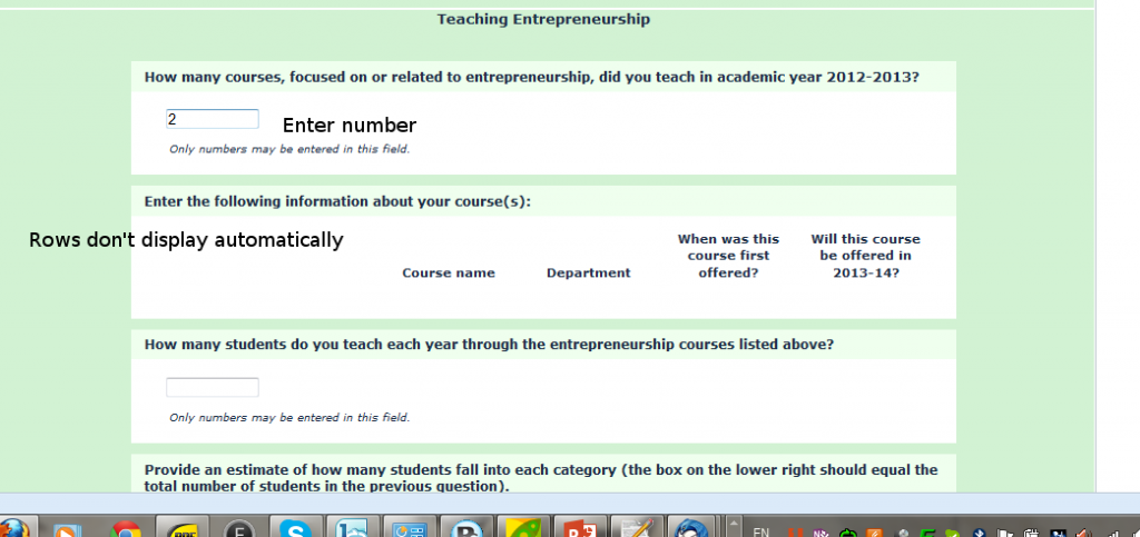 The rows don't display as soon as the number is entered...they only show up after clicking somewhere else...is there a way to make the rows appear as soon as the number is entered.