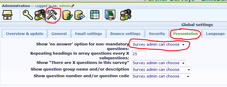ich habe eine Frage zu den allgemeinen Einstellungen von Umfragen mit Lime Survey.