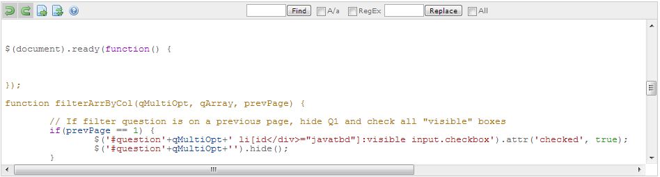 2. Right Mouse click on the question -> Inspect Element -> search for your script in the source code is it there? if not perhaps you overwrited it