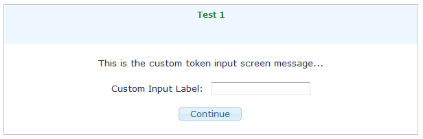 $(document).ready(function(){ if($('#tokenmessage').length > 0 && $('#token').length > 0) { // Custom token message $('#tokenmessage').html('This is the custom token input screen message...'); // Custom token input label $('label[for="token"]').html('Custom Input Label: '); } });