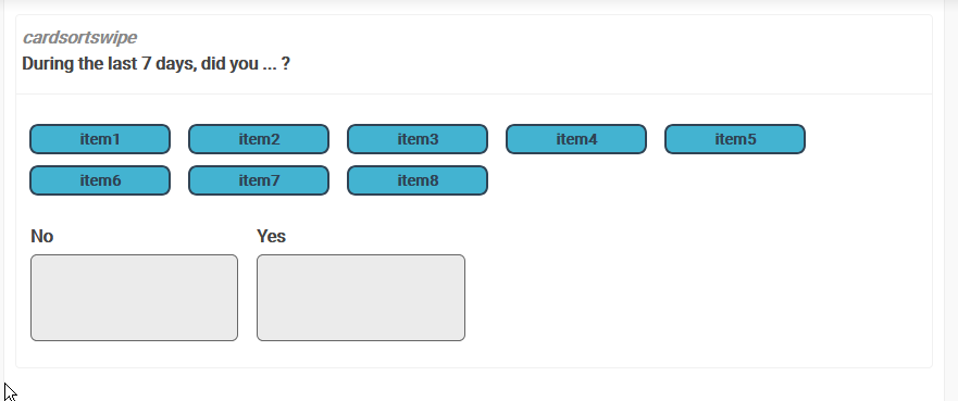 I just pretested the card sort question type and had an idea about a combination of card sorting and "swiping".