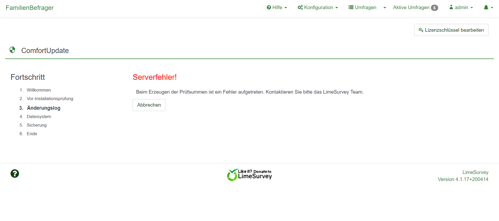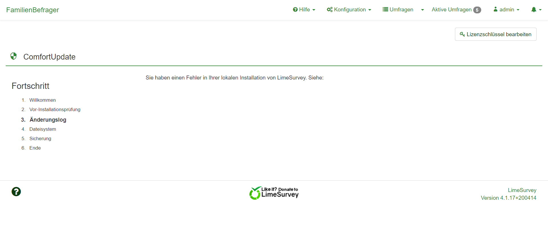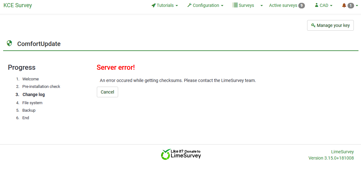 So, it seems that we are left to ourselves even though we pay for the ComfortUpdate.LimeSurvey is available in two versions. The professional hosting LimeSurvey Cloud and the free and self-hosted open source version LimeSurvey Community Edition (CE).