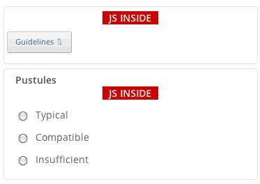 .jsinside:before { content:"JS INSIDE"} .jsinside {display: block;text-align:center;width:80px;margin:auto;background:#c00;color:#fff;font-weight:bold}
