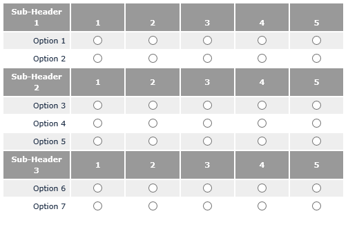 .sub-header-row { background-color: #999999; } .sub-header-row th { font-weight: bold; text-align: center; color: #FFFFFF; background-color:#999999 !important; } .checkedLabel { color:#009900; }
