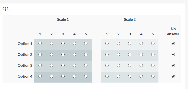 @media only screen and (min-width: 768px) { .table-dual-scale thead th, .table-dual-scale tbody td { text-align: center; } .table-dual-scale .array1 { background-color: #f9f9f9; } .table-dual-scale td.answer-item.scale-1 { background: #c0cdd1; } .table-dual-scale td.answer-item.scale-2 { background: #dde4e6; } .table-dual-scale .array2 td.answer-item.scale-1 { background: #cfd9db; } .table-dual-scale .array2 td.answer-item.scale-2 { background: #ecf0f1; } }