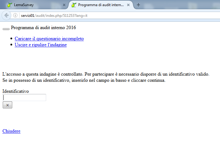 Succede semplicemente quando imposti che l'utente può salvare l'indagine e riprenderla in una successivo momento. Quando l'utente clicca su "salva" gli viene spedito un codice per poi poterla riaprire. Basta togliere la spunta dalle opzioni generali.