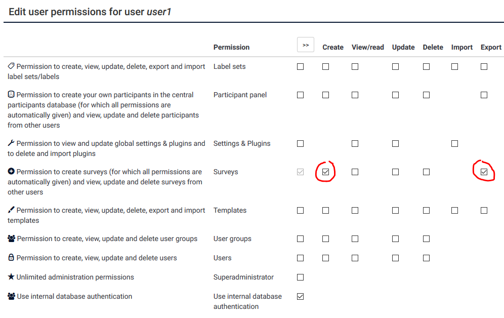 I'm still baffled by this "Permission to create surveys (for which all permissions are automatically given) and view, update and delete surveys from other users"