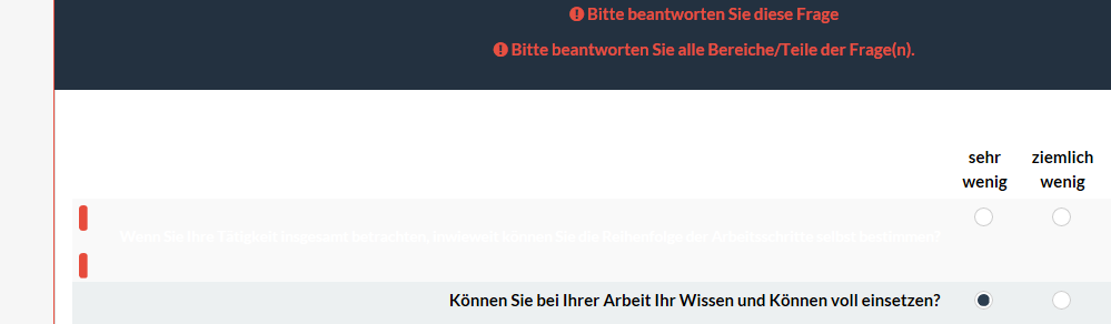 I have no problem with spans in the row labels in version 2.55.3.But I seem to have found the root of the problem: The questions were formatted to have alignment and margin by the use of a <span> tag each. That seems to have broken the orange highlighting (which I discovered to work fine with a new array question without span tags!).