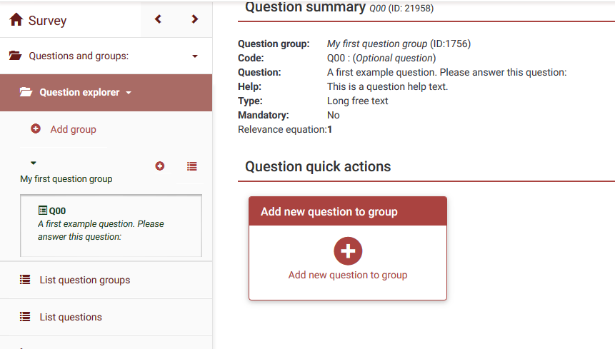 When I create a new survey, an example question group with one hew example question automatically appears. I cannot seem to find a way to prevent this. We are running version 2.50+ 160829. I have another installation for testing (latest version as of yesterday) that creates a blank survey with no groups or questions - my desired preference.