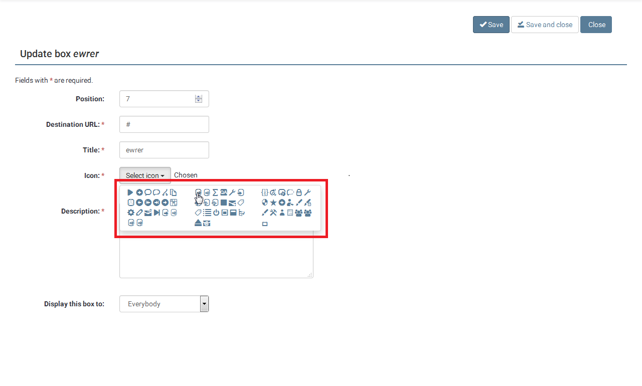 I want to add extra icons for home page boxes. From where i should add them? I can add them from \application\models\Boxes.php but its not showing in list of icon on create new box. watch out this screenshot.