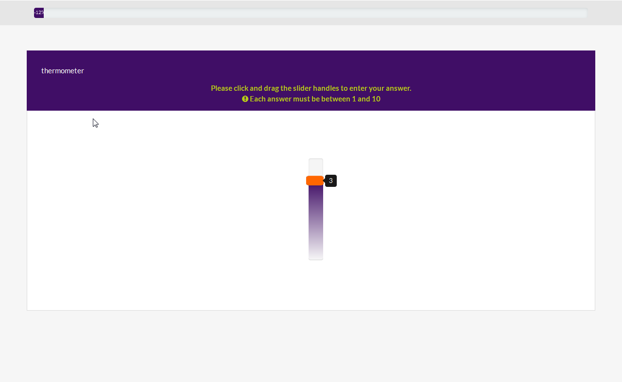 <script type="text/javascript" charset="utf-8"> $(document).ready(function() { setTimeout(function() { $('#question{QID} input[type="text"]').bootstrapSlider('setAttribute', 'reversed', true); $('#question{QID} input[type="text"]').bootstrapSlider('refresh'); }, 100); }); </script>