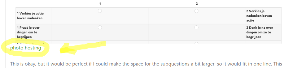 This is okay, but it would be perfect if I could make the space for the subquestions a bit larger, so it would fit in one line. This will look a bit better I guess... Does anyone have an idea about that?