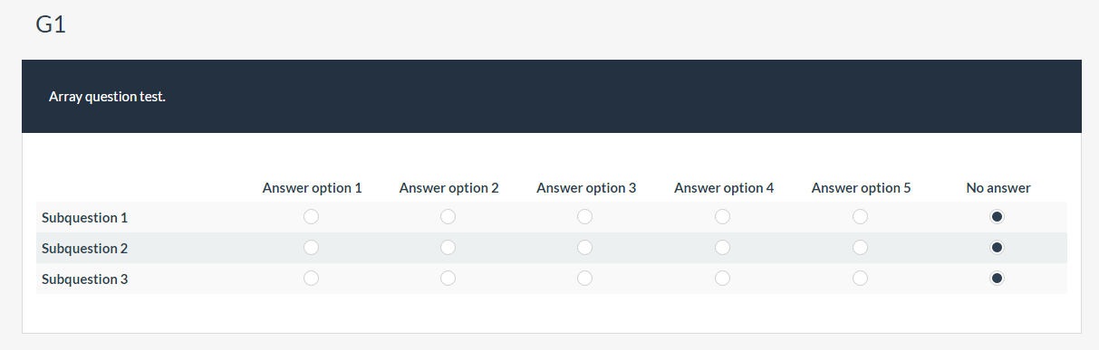 frisket wrote: I think what Limesurvey is missing is that users want what I posted, basically a 5-point array where they get to specify the labels of the columns instead of having them numbered 1-5.