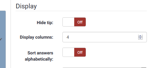 If you set 4 display columns and have 7 answers (put one diagram picture in the answer) you get two rows with 4 and 3. But always top down. So you cannot have 3 and then 4.