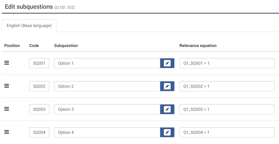 In first question I have 5 subquestions, user chose answer from 1 to 5